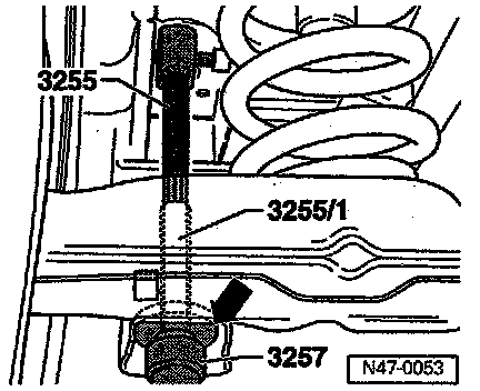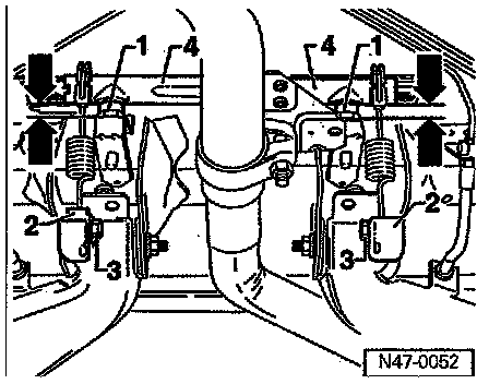 ^ If for example, one or both control arms are replaced and no markings are given for the installation position of the spring mounting -2- on the control arm, it is recommended that the basic setting procedure be done, as described below.