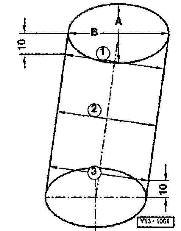 - Measure diagonally at 3 positions horizontally -A- and lengthwise -B-.