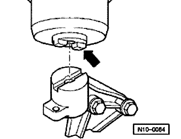 - When installing the right subframe mount (engine mount), make sure the recess in engine bracket engages into the pin of the hydra mount (arrow).
