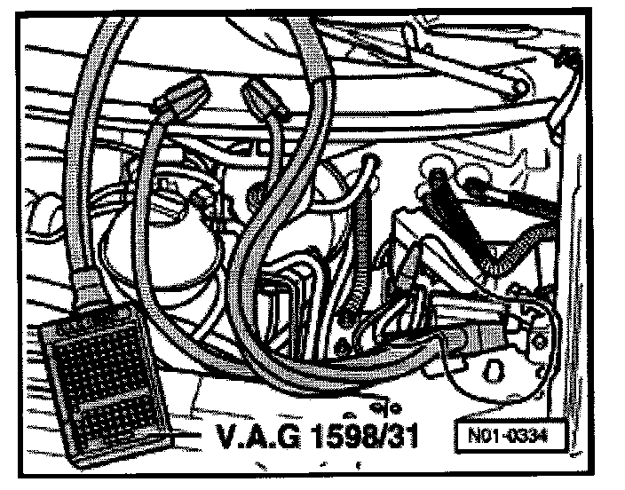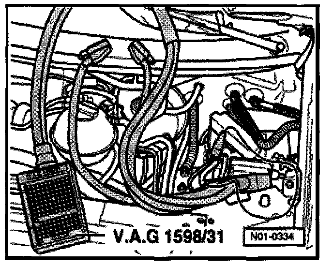 - Connect VAG1598/31 test box to control module wiring harness. Engine Control Module (ECM) is not connected.