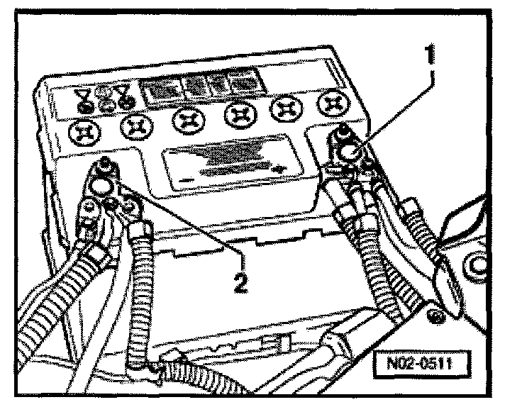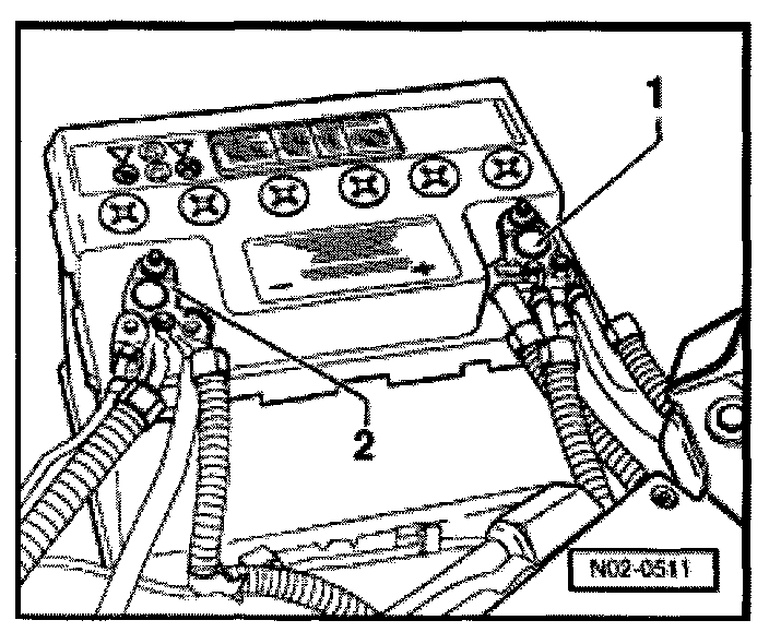 - Then connect the battery ground strap -2- to battery negative terminal and tighten to 5 Nm.