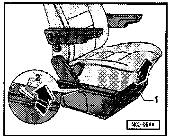 - Operate lever -1- and slide driver's seat forwards onto stop.