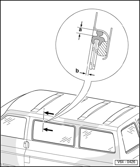 NOTE: Windshield, rear, and side windows are flush-bonded in window opening with 1K PUR adhesive.