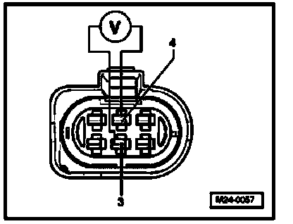 - Connect multimeter to measure voltage at terminals 3 and 4 (connector to Motronic Engine Control Module (ECM) -J220-) using adapter cables from VAG 1594.