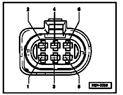 - Remove protective cover -arrows-and disconnect 6-pin connector (black) -1- to Heated Oxygen Sensor (HO2S) -G39-.