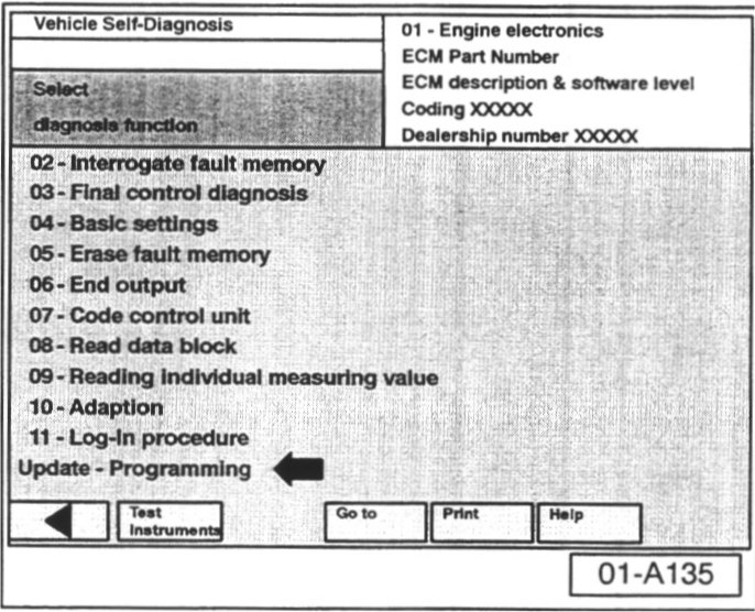 The "Update - Programming" function is only available when the inserted flashing CD level and current vehicle ECM level are different.