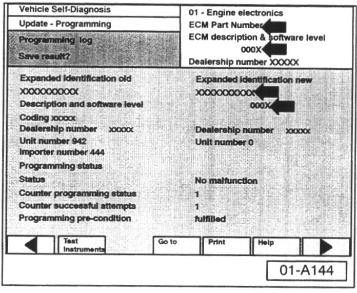 ^ ECM Part Number and old software level is still displayed at (arrows).