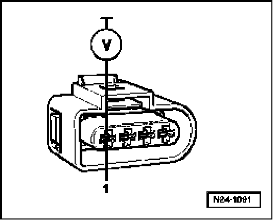 - Connect multimeter using auxiliary cables from V.A.G1594 to measure voltage at contacts 1 + 2 (connector to engine control module).