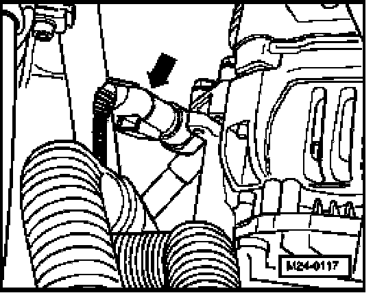 - Disconnect black 2-pin harness connector to pressure switch for power steering (arrow).