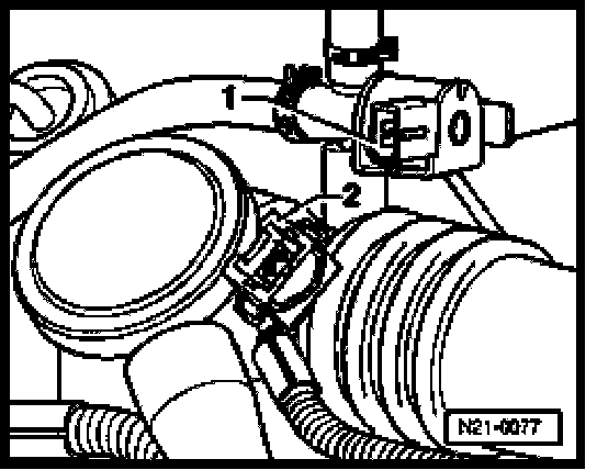 - Disconnect connector -2- at Wastegate Bypass Regulator Valve -N75- (-1-).