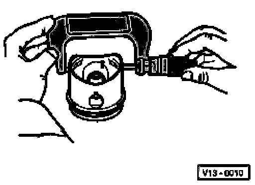 Measure pistons approximately 10 mm from lower edge of skirt, at 90°angle to piston pin axis.