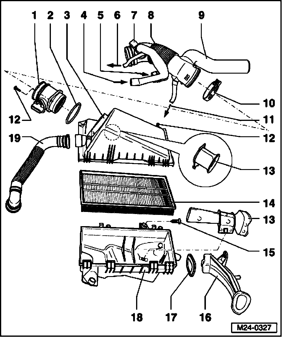 Air Filter, Disassembling And Assembling (Vehicles With Engine Code BDC)