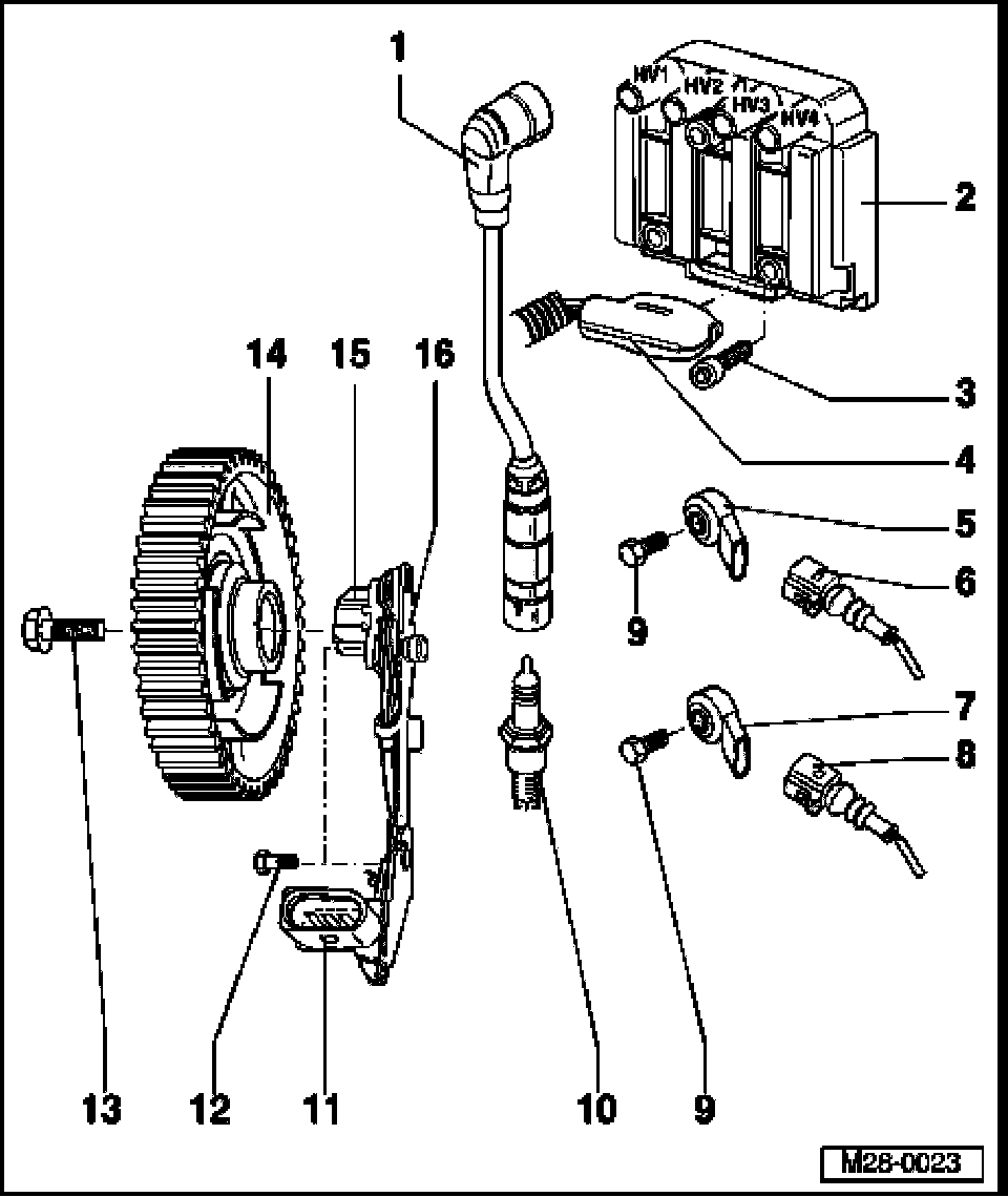 - Ignition wires connection:HV1 = Cylinder 1HV2 = Cylinder 2HV3 = Cylinder 3HV4 = Cylinder 4