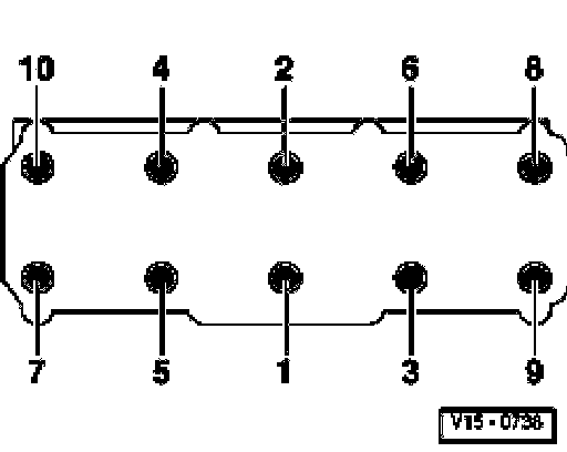 Tighten securing bolts (starting on inside and working outward) to 15 Nm + 1/4 turn (90°) further,