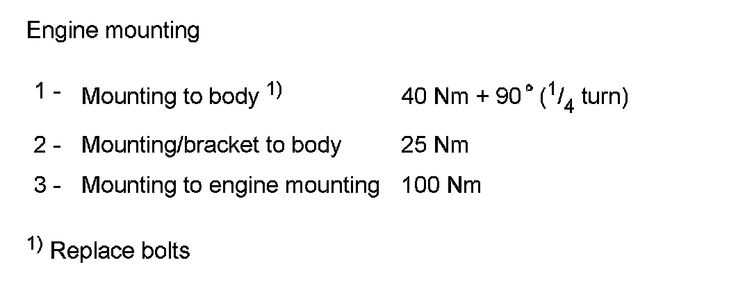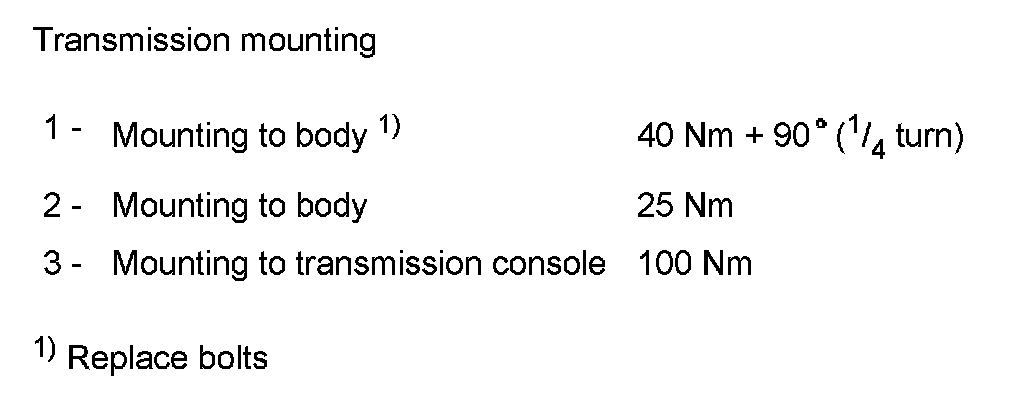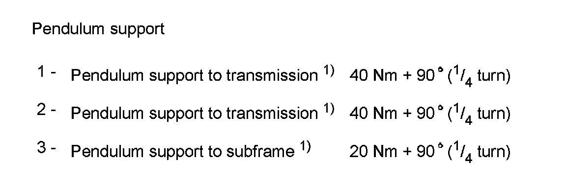1 - Pendulum support to transmission 1) 40 Nm + 90° (1/4 turn)