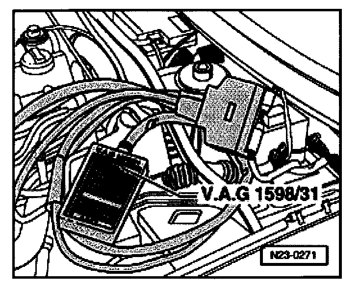 - Connect VAG 1598/31 adapter cable to control module wiring harness. Engine Control Module (ECM) is not connected.