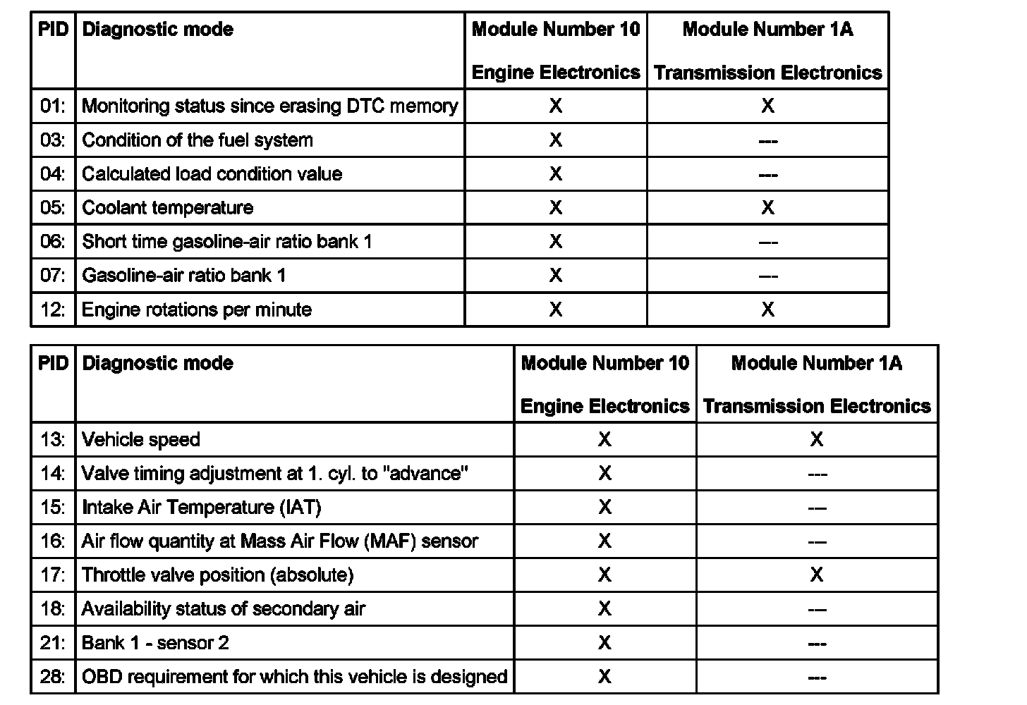 - The measured values are sorted according to the PID (parameter-identifications).