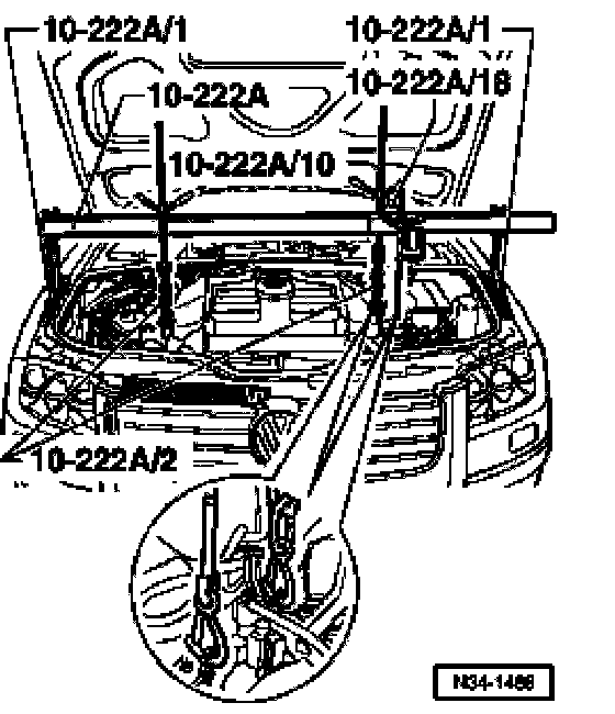 - Secure third spindle 10-222 A/10 with additional hook 10-222 A/2 on lifting eye at rear left of engine.