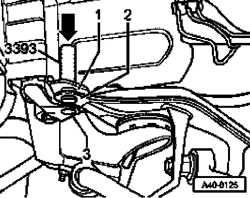 - Unscrew hex bolts -arrows- from transmission mounting -1-.