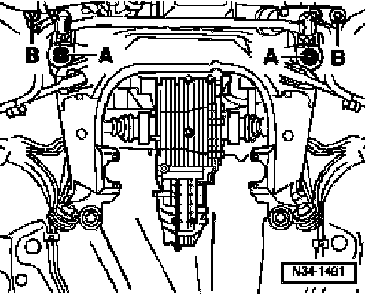 - Loosen hex bolts -B- until the subframe can be taken out.