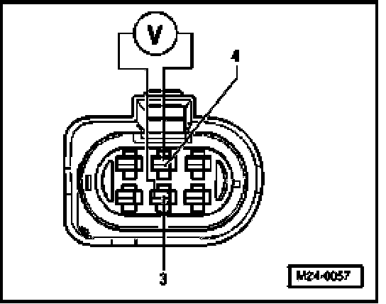 - Connect multimeter to terminals 3 + 4 of connector to Engine Control Module (ECM) for voltage measurement.