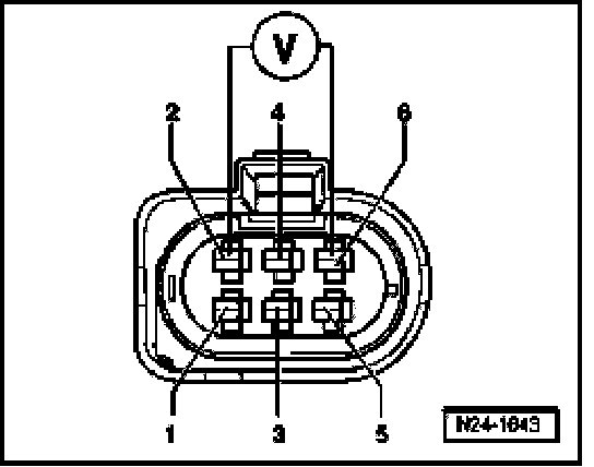 - Connect multimeter to connector terminals 2 + 6 for voltage measurement.