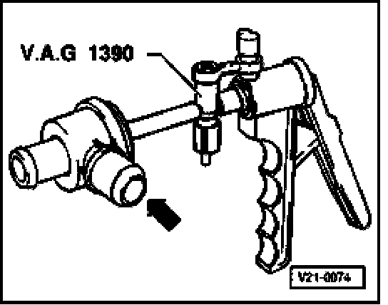 - Connect hand vacuum pump (VAG1390) to vacuum connection for deceleration shut-off valve.