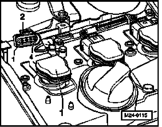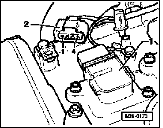 - Disconnect 4-pin connector -2- from ignition coil -1- to be checked.