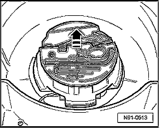 - Lift and remove tool/jack set insert in direction of -arrow-.