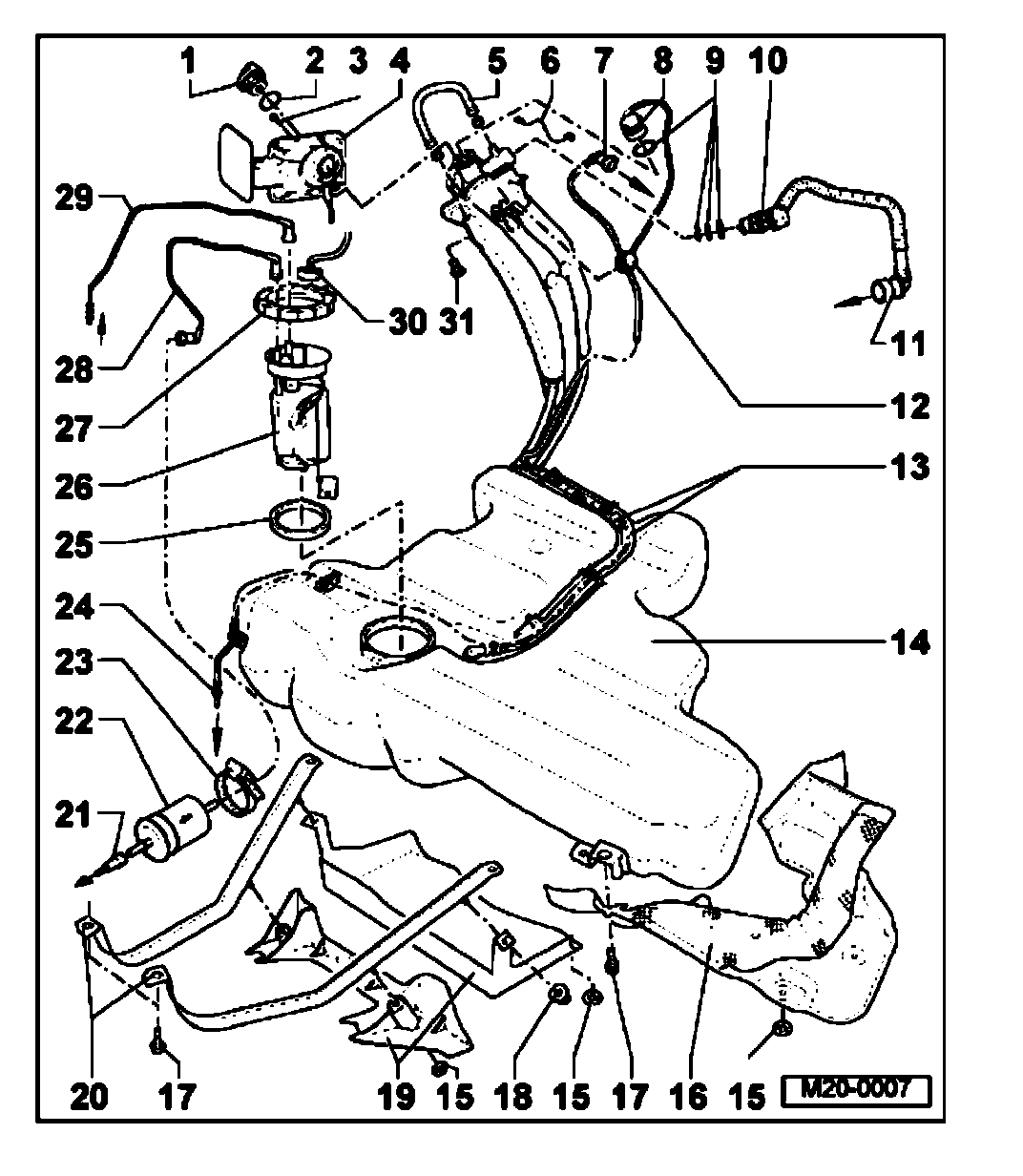 ^ Moisten seal with fuel only when installing flange or fuel delivery unit