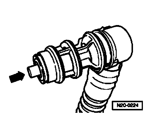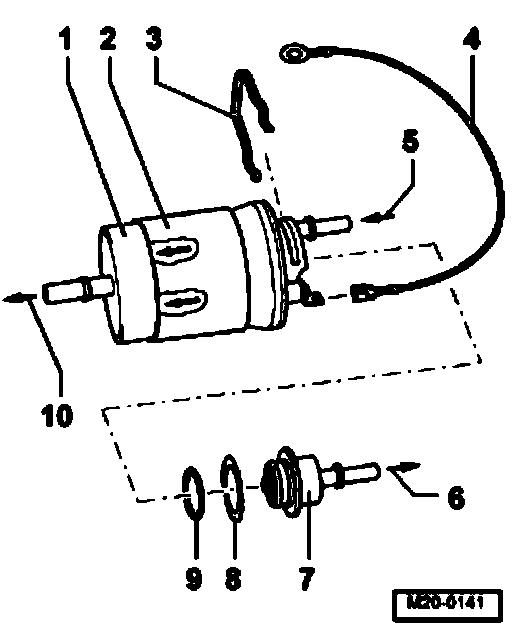 ^ Observe installed position: long straight connection (arrow) faces fuel filter