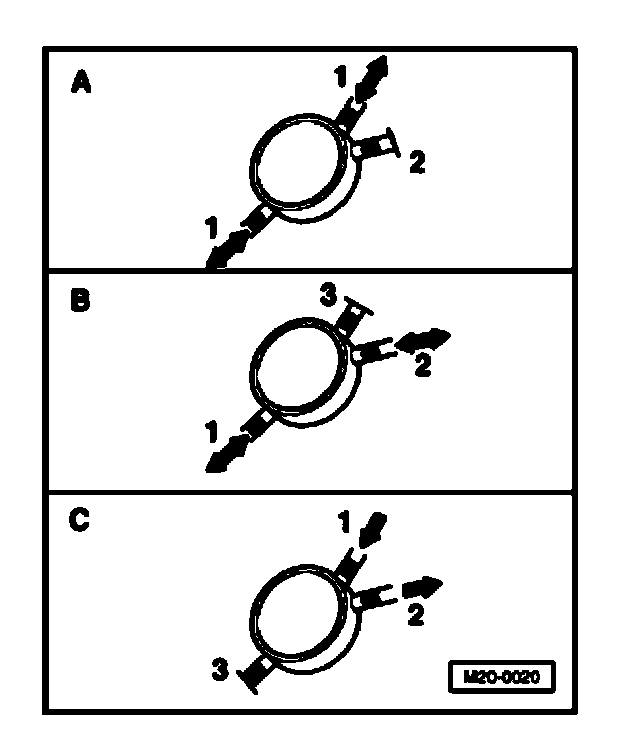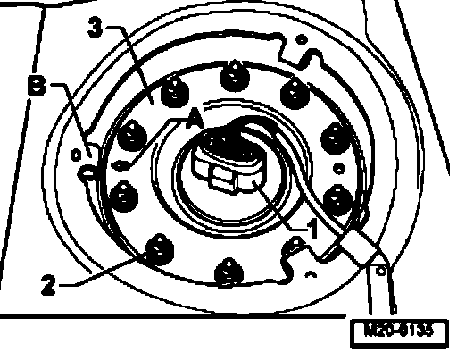 The arrow -A- on the flange must be parallel with the vehicle longitudinal axle and must face backward, -B-.