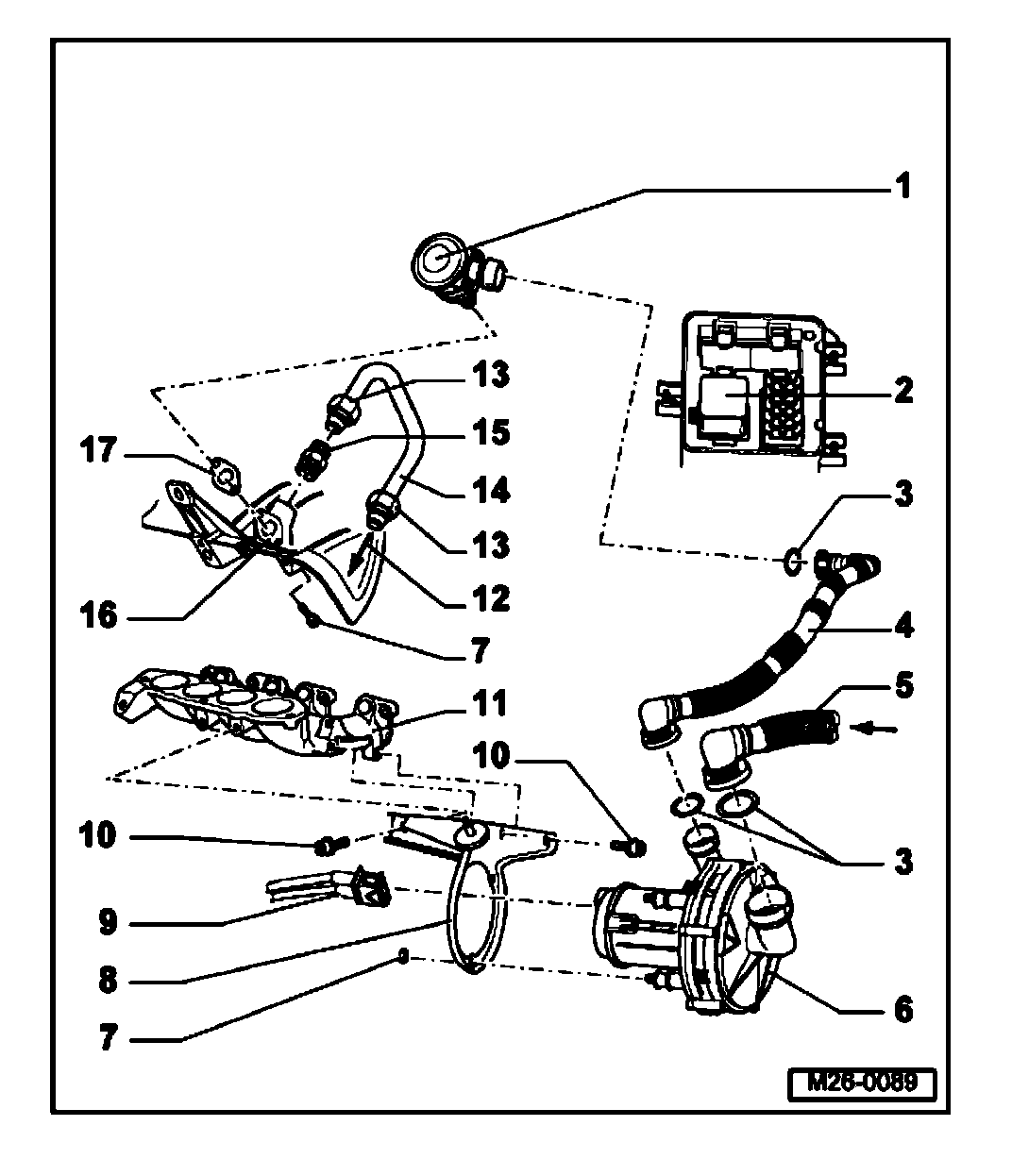 Secondary air injection system components, removing and installing