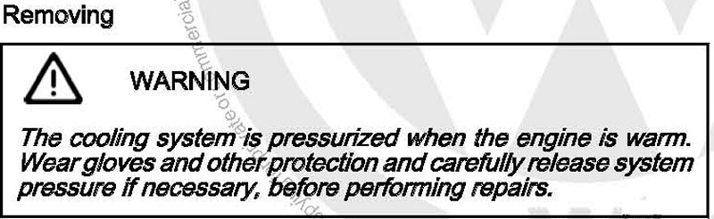 - Drain engine coolant. Refer to Engine Mechanical, Fuel Injection and Ignition; Rep. Gr. 19; General Information.