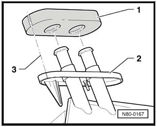 - Remove nuts -1- from bulkhead side (3.7 Nm).