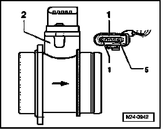 - Disconnect 5-pin connector -1- from Mass Air Flow (MAF) sensor -2-.