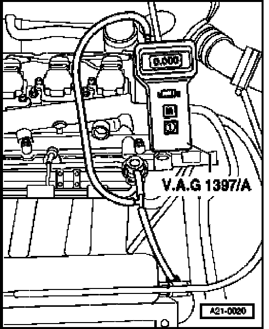 - Disconnect connection hose between intake manifold and fuel pressure regulator at intake manifold and connect to T-piece of turbocharger tester (VAG1397A).