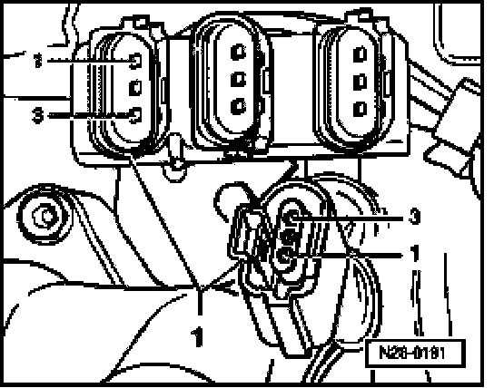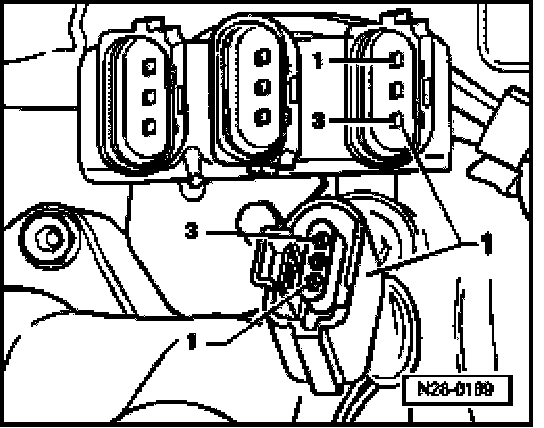 - Disconnect the 3-pin harness connector for Knock Sensor (KS) 1 -G61- (-1-).
