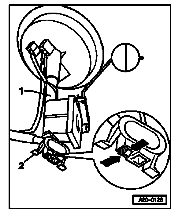 - Connect suction jet pump -2- to sensor at inside of fuel tank. Catches must engage.