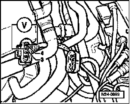- Use adapter cables from V.A.G 1594 to connect multimeter to terminals 3 + 4 (ECM connector) for voltage measurement.