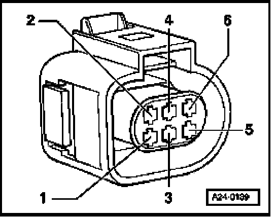 - Disconnect 6-pin harness connector (black) to Heated Oxygen Sensor (HO2S) -G39- (item no. 1).