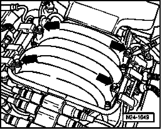 - Position fuel rail with secured fuel injectors on intake manifold and apply uniform pressure to press it in.