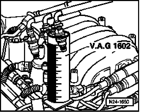Insert a fuel injector to be tested into a measuring tube of V.A.G 1602 tester for fuel injection quantity.