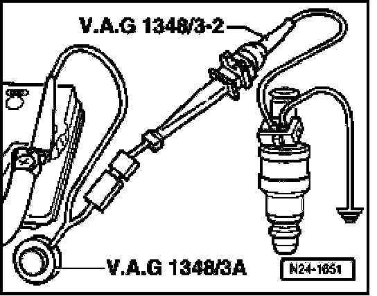- Use adapter cable to connect second terminal of fuel injector to V.A.G 1348/3 remote control with V.A.G 1348/3-2 adapter cable.