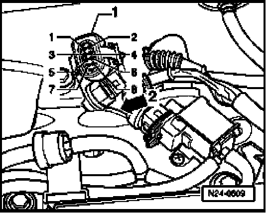 - Disconnect 6-pin connector -2- at the throttle valve control module.
