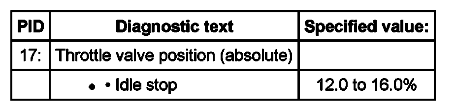 - Check specified value of throttle valve position (absolute) at idle stop: