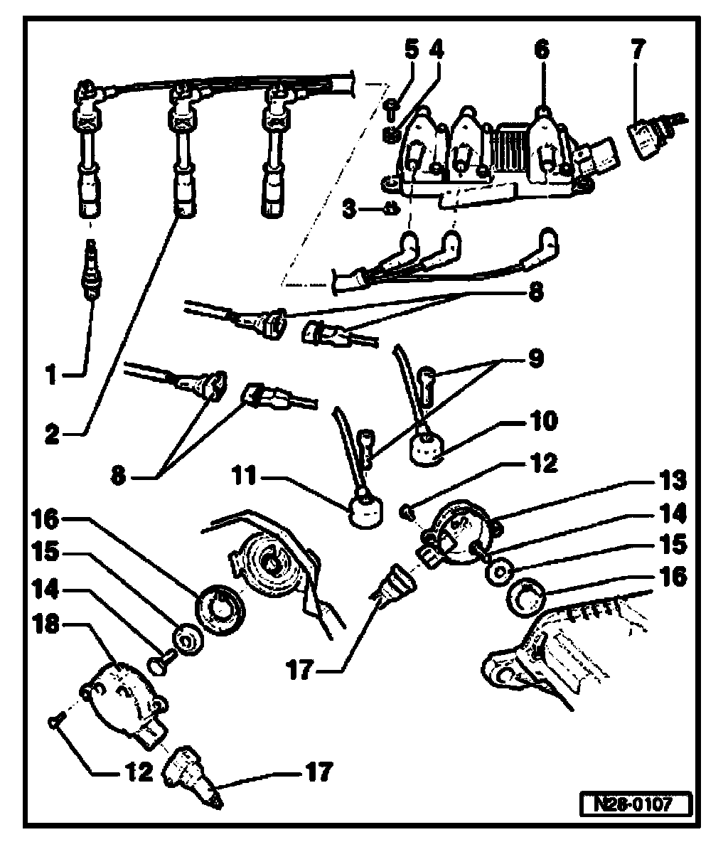 6. Ignition coils (-N-, -N128-, -N158-)