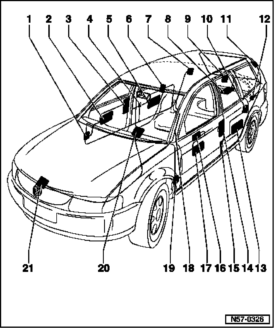 - Installation position: In area of rear roof carrier, covered by roof trim