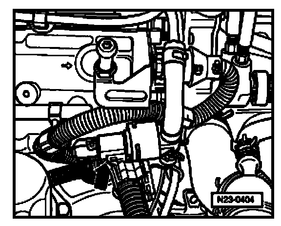 - Disconnect 10-pin harness connector (arrow) for fuel temperature sensor (harness connector to injection pump quantity adjuster).