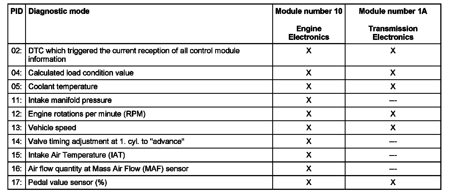 This diagnostic mode displays the operating conditions at which an emission relevant malfunction was detected and stored by the control module for Diesel-Direct fuel injection system or the Transmission Control Module (TCM).